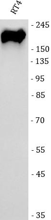 Western blot: RT4 stained with ARG45635 anti-RAPH1 antibody at 0.5 μg/ml dilution.