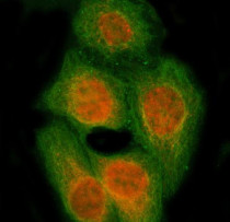 Immunofluorescence: Hela stained with ARG45493 anti-RBM14 antibody at 5 μg/ml dilution.