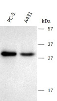 Western blot: PC-3 and A431 stained with ARG44007 anti-REEP3 antibody at 0.5 μg/mL dilution.