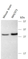 Western blot: Mouse brain and NIH/3T3 stained with ARG44007 anti-REEP3 antibody at 0.5 μg/mL dilution.
