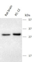 Western blot: Rat brain and PC-12 stained with ARG44007 anti-REEP3 antibody at 0.5 μg/mL dilution.