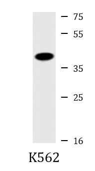 Western blot: 20 ug of K562 whole cell lysate stained with ARG41294 anti-RFC2 antibody at 1:1000 dilution.