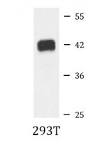 | 存放说明 | For continuous use, store undiluted antibody at 2-8°C for up to a week. For long-term storage, aliquot and store at -20°C. Storage in frost free freezers is not recommended. Avoid repeated freeze/thaw cycles. Suggest spin the vial prior to opening. The antibody solution should be gently mixed before use. |