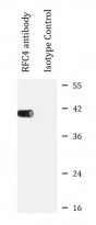 Immunoprecipitation: 200 ug extracts of K562 cells were immunoprecipitated and stained with ARG41278 anti-RFC4 antibody at 1:1000 dilution.