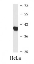 Western blot: 25 ug of HeLa cell lysate stained with ARG41278 anti-RFC4 antibody at 1:1000 dilution.