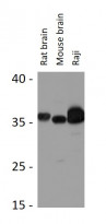 | 阳性对照 | Rat brain, Mouse brain and Raji | ||||||