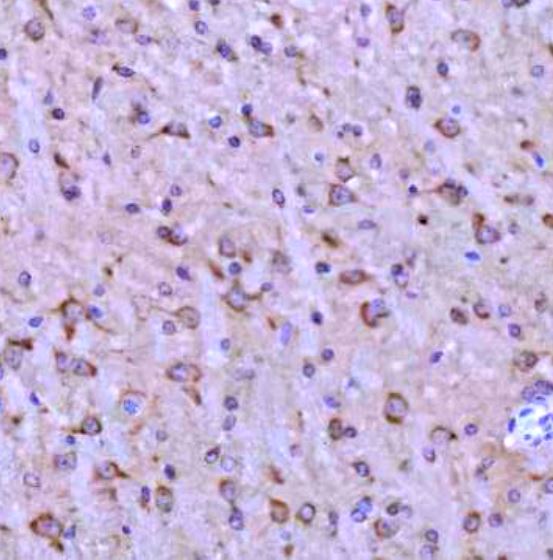 Immunohistochemistry: Mouse brain stained with ARG45327 anti-RIMBP2 antibody at 2 μg/ml dilution.