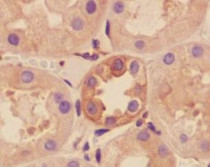 Immunohistochemistry: Paraffin-embedded Human kidney tissue stained with ARG40490 anti-ROCK1 antibody.