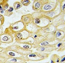 Immunohistochemistry: Formalin-fixed and paraffin-embedded Human lung carcinoma tissue stained with ARG55694 anti-ROR1 antibody.