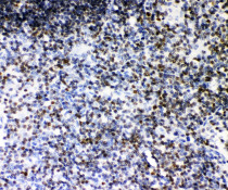 Immunohistochemistry: Frozen section of Rat spleen tissue. The tissue section was blocked with 10% goat serum. The tissue section was then stained with ARG41229 anti-RUNX1 / AML1 antibody at 1 µg/ml dilution, overnight at 4°C.