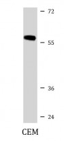 Western blot: 35 µg of CEM cell lysate stained with ARG54882 anti-RUNX2 antibody.