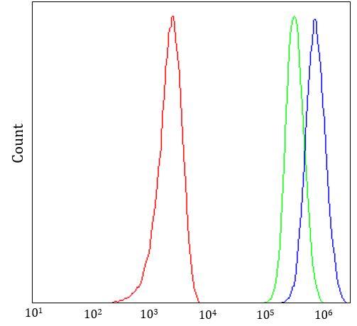 Flow Cytometry: MCF-7 stained with ARG45955 anti-RYK antibody at 1 µg/10^6 cells dilution.