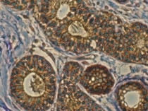 Immunohistochemistry: Formalin-fixed and paraffin-embedded Human mammary tissue. Antigen Retrieval: Heat mediation. Tissue section was stained with ARG41900 anti-Rab11 antibody at 1:200 dilution.