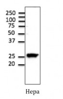 Western blot: 100 µg of Hepa cell lysate stained with ARG41900 anti-Rab11 antibody at 1:500 dilution.