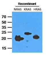 Western blot: 200 ng of NRAS, KRAS and HRAS recombinant proteins stained with ARG57108 anti-Ras (pan) antibody [2G9].