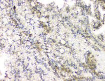 Immunohistochemistry: Paraffin-embedded Human renal cancer tissue. Antigen Retrieval: Heat mediation was performed in Citrate buffer (pH 6.0) for 20 min. The tissue section was blocked with 10% goat serum. The tissue section was then stained with ARG42694 anti-RhoB antibody at 1 µg/ml dilution, overnight at 4°C.