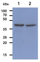 | 存放说明 | For continuous use, store undiluted antibody at 2-8°C for up to a week. For long-term storage, aliquot and store at -20°C. Storage in frost free freezers is not recommended. Avoid repeated freeze/thaw cycles. Suggest spin the vial prior to opening. The antibody solution should be gently mixed before use. |