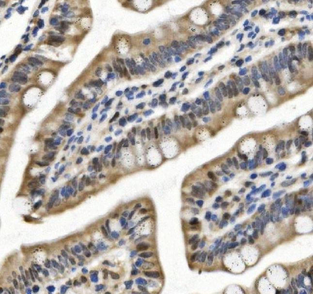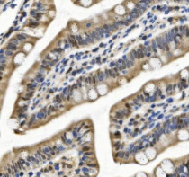 Immunohistochemistry: Rat intestine stained with ARG45388 anti-SAMHD1 antibody at 2 μg/ml dilution.