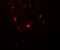 Immunohistochemistry: 4% Paraformaldehyde-fixed Human brain tissue stained with ARG42235 anti-SAMHD1 phospho (Thr592) antibody (red) at 20 µg/ml dilution.