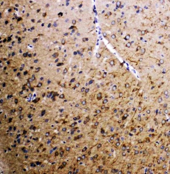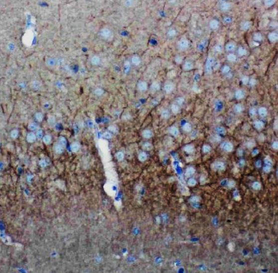 Immunohistochemistry: Mouse brain stained with ARG45131 anti-SAP102 antibody at 1 μg/ml dilution.