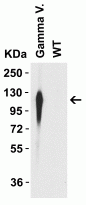 Western blot: 10 µg of SARS-CoV-2 Spike S1 WT protein (right) or gamma variant (left) expression plasmid transfected 293 (right) cell lysate stained with ARG43732 anti-SARS-CoV-2 Spike P26S (Gamma Variant) antibody for 1 hour incubation at RT in 5% NFDM/TBST, at 1 µg/ml dilution.