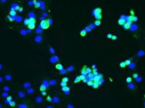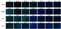 Immunofluorescence: SARS-CoV-2 infected cells were stained with ARG42918 anti-SARS-CoV-2 Spike protein antibody (green) at 1:500 dilution and 4°C. DAPI (blue) for nuclear staining.