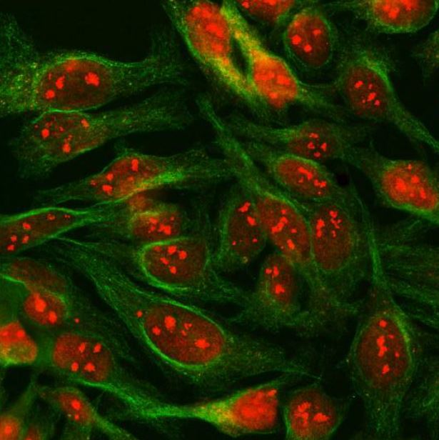 Immunofluorescence: Hela stained with ARG45263 anti-SCML1 antibody at 5 ug/ml dilution.