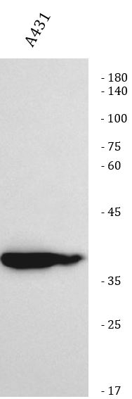 Western blot: A431 stained with ARG45263 anti-SCML1 antibody at 0.5 μg/ml dilution.