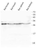 Western blot: Rat brain, rat heart, rat spleen, and rat kidney stained with ARG45158 anti-SCN4B antibody at 0.5 μg/ml dilution.