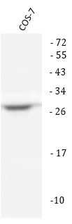 Western blot: COS-7 stained with ARG45158 anti-SCN4B antibody at 0.5 μg/ml dilution.