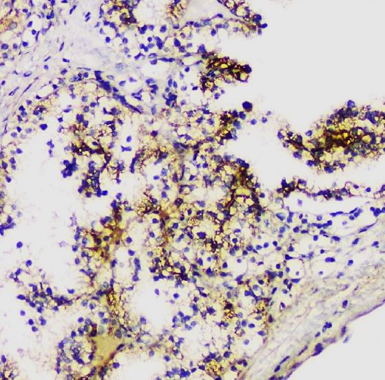 Immunohistochemistry: Human renal cancer stained with ARG45158 anti-SCN4B antibody at 1 μg/ml dilution.