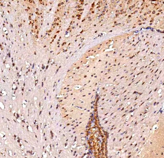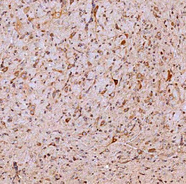 Immunohistochemistry: Mouse brain stained with ARG45270 anti-SGCE antibody at 2 μg/ml dilution.