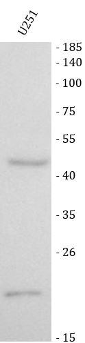 Western blot: U251 stained with ARG45270 anti-SGCE antibody at 0.5 μg/ml dilution.