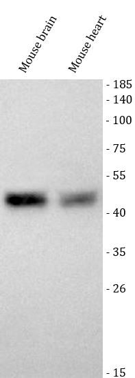 Western blot: Mouse brain and mouse heart stained with ARG45270 anti-SGCE antibody at 0.5 μg/ml dilution.