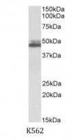 Western blot: 35 µg of K562 cell lysate (in RIPA buffer) stained with ARG42131 anti-SH3GL1 / EEN antibody at 0.3 µg/ml dilution and incubated at RT for 1 hour.
