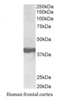 Western blot: 35 µg of Human frontal cortex lysate (in RIPA buffer) stained with ARG42134 anti-SH3GL2 antibody at 0.3 µg/ml dilution and incubated at RT for 1 hour.
