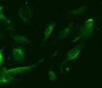 Immunofluorescence: U2OS cells stained with ARG40413 anti-SLC16A7 / MCT2 antibody at 1:100 dilution.