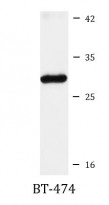 | 存放说明 | For continuous use, store undiluted antibody at 2-8°C for up to a week. For long-term storage, aliquot and store at -20°C. Storage in frost free freezers is not recommended. Avoid repeated freeze/thaw cycles. Suggest spin the vial prior to opening. The antibody solution should be gently mixed before use. |