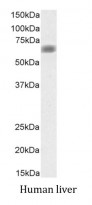 Western blot: 35 µg of Human liver lysate (in RIPA buffer) stained with ARG64836 anti-SLC47A1 antibody at 0.1 µg/ml dilution and incubated at RT for 1 hour.