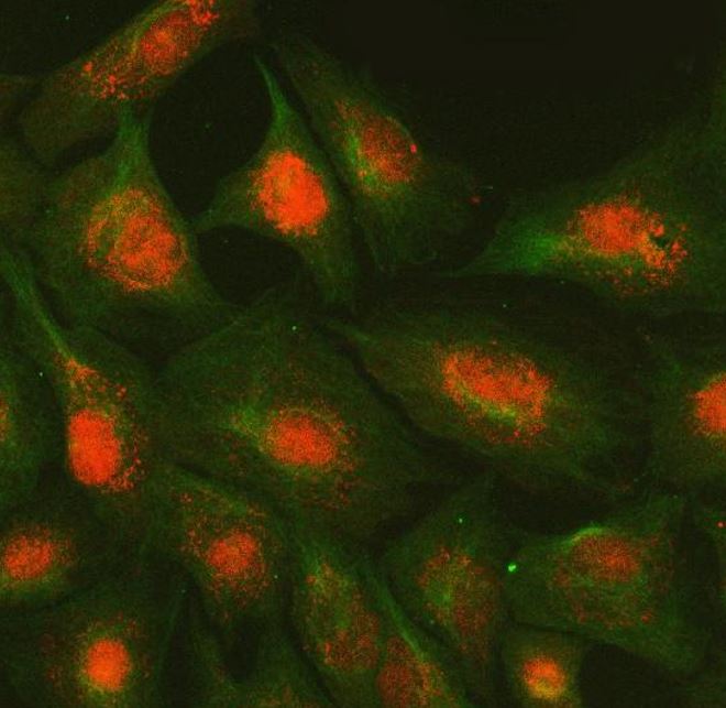 Immunofluorescence: A549 stained with ARG45595 anti-SMC2 antibody at 5 μg/ml dilution.