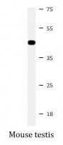 Western blot: 20 µg of Mouse testis lysate stained with ARG56133 anti-SOX17 antibody at 1:2000 dilution.
