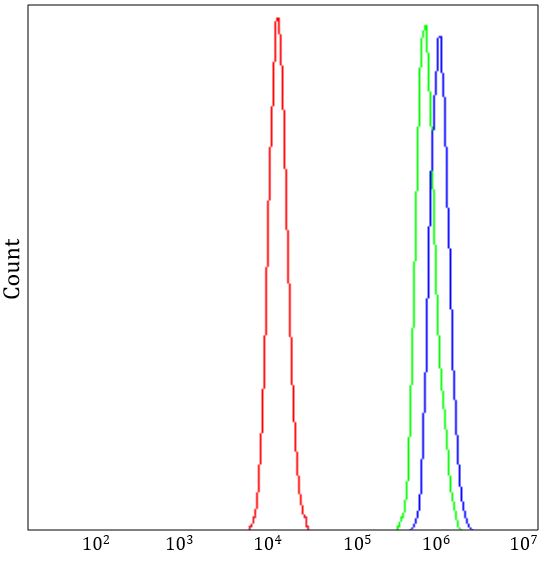 Flow Cytometry: HCT116 stained with ARG45277 anti-SPAG7 antibody at 1 µg/10^6 cells dilution.