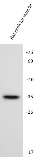 Western blot: Rat skeletal muscle stained with ARG45277 anti-SPAG7 antibody at 0.5 μg/ml dilution.
