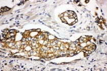 Immunohistochemistry: Paraffin-embedded Human mammary cancer stained with ARG59270 anti-SPTLC1 antibody.