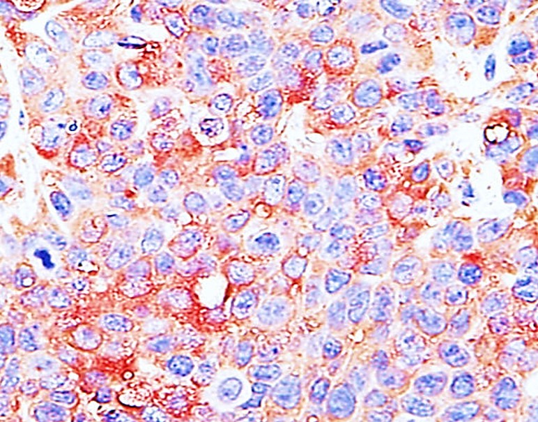 Immunohistochemistry: Paraffin-embedded Human liver carcinoma tissue section stained with ARG66984 anti-ST3GAL1 antibody at 1:100 dilution.