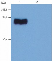 Lane 2 was stained with Isotype mouse IgG1 control. -