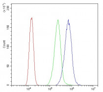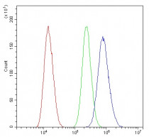 Flow Cytometry: U87 cells were blocked with 10% normal goat serum and then stained with ARG59273 anti-SUB1 / PC4 antibody (blue) at 1 µg/10^6 cells for 30 min at 20°C, followed by incubation with DyLight®488 labelled secondary antibody. Isotype control antibody (green) was rabbit IgG (1 µg/10^6 cells) used under the same conditions. Unlabelled sample (red) was also used as a control.