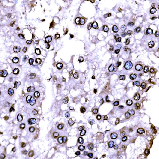 Immunohistochemistry: Human liver cancer stained with ARG45217 anti-SUN2 antibody at 2 μg/ml dilution.