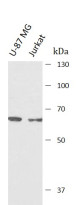 Western blot: SW620 and Jurkat stained with ARG43648 anti-Secretogranin II antibody at 1:1000 dilution.
