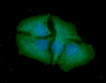 Immunofluorescence: HeLa cells line stained with ARG57123 anti-Smac / Diablo antibody [19F2] at 1:100 (Green).